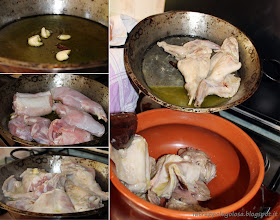 meglio questo piatto. Il coniglio viene prima rosolato a pezzi nella sartana,